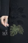 لب آستین و مغزی گلها نگین کاری شده (بدون ریزش)